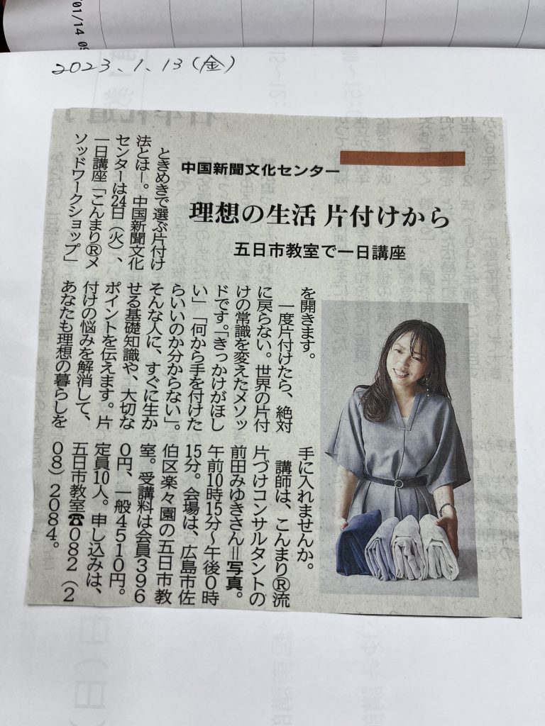 寒い日が続く1月と、少し暖かくなった4月に、(広島)中国新聞文化センター五日市教室で、1日講座「こんまりメソッドワークショップ」を開催させていただきました!