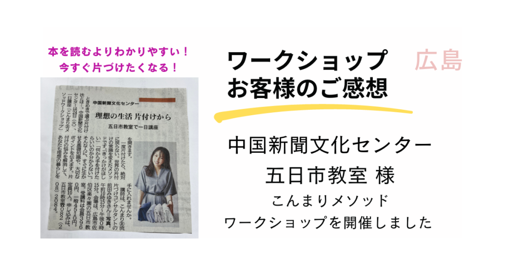 中国新聞に案内を出していただいたようで、「この記事を見てきました!」「広島でもこんまりのワークショップないかな・・と思ってたんです!」と、おっしゃっていただけて、開催を決意してよかった😭・・・と、思いました。