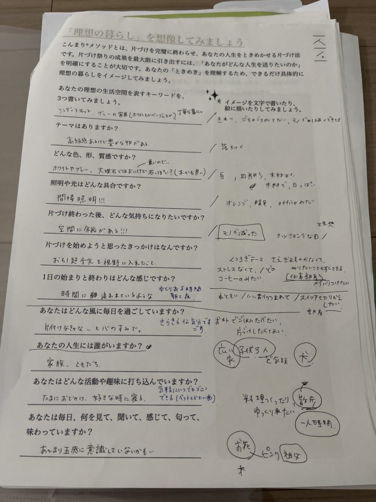 こんまり流片づけでは、片づけを始める前に、理想の暮らしを伺ってから片づけレッスンを始めていきます。